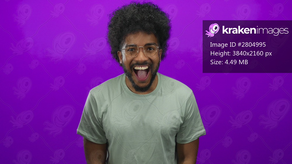 African american man with glasses smiles against a vibrant purple background showcasing happiness and energy.
