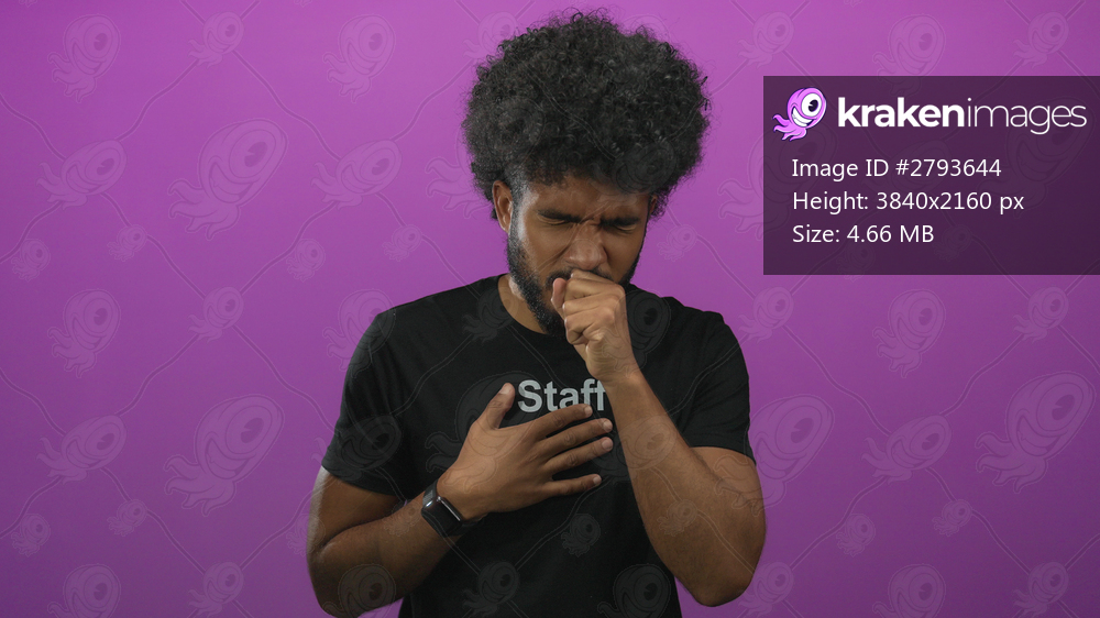 African american man in staff uniform coughing against isolated pink background, emphasizing health and wellness themes.