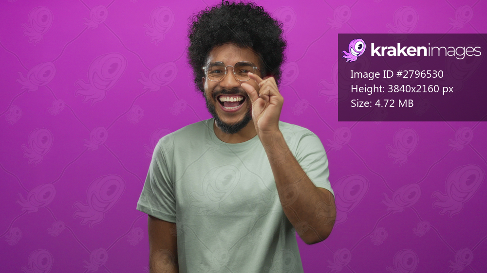 African american man making small gesture with fingers against vibrant pink background, conveying humor and playfulness with an expressive smile and curly hair. - Kraken Images