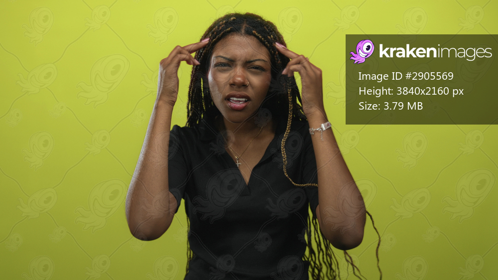 African american woman with braided hair and open palms shrugging in studio against lime green wall; confusion.