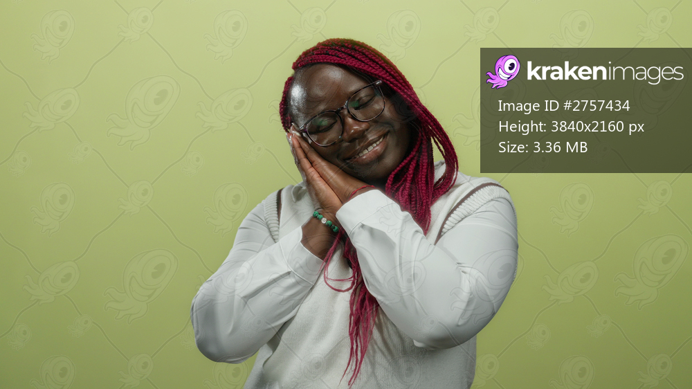 African american woman gesturing sleep over isolated yellow background wall with eyes closed and hands together in white outfit and pink braids.
