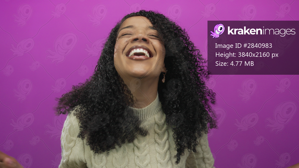 African american woman smiling arms crossed x gesture in purple studio; denial refusal rejection boundary.