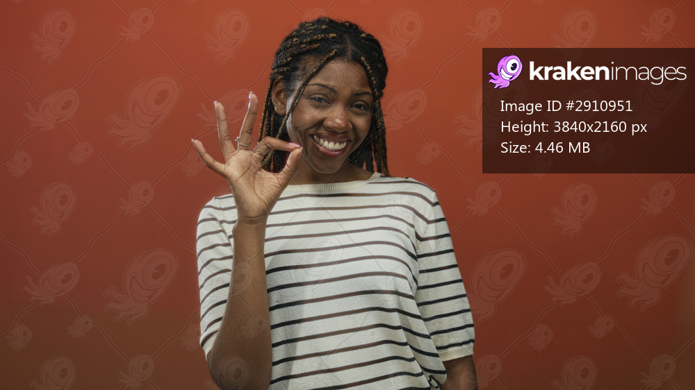 African american woman smiling and showing ok hand gesture in studio against an orange wall; joy positivity affirmation.