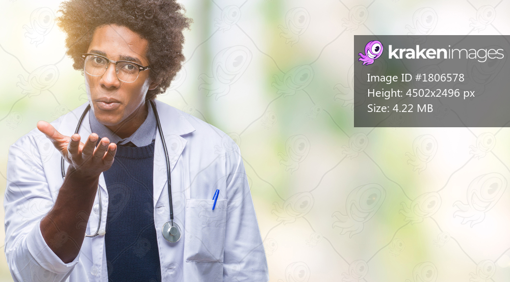 Afro american doctor man over isolated background looking at the camera blowing a kiss with hand on air being lovely and sexy. Love expression.