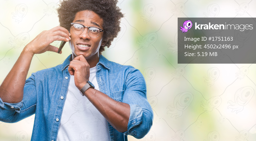 Afro american man talking on the phone over isolated background serious face thinking about question, very confused idea