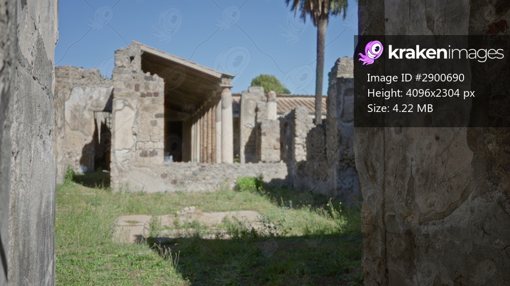 Ancient stone ruins captured with shallow defocused foreground and soft bokeh over distant columns and courtyard in an outdoor scene; background backplate copyspace calm. - Kraken Images