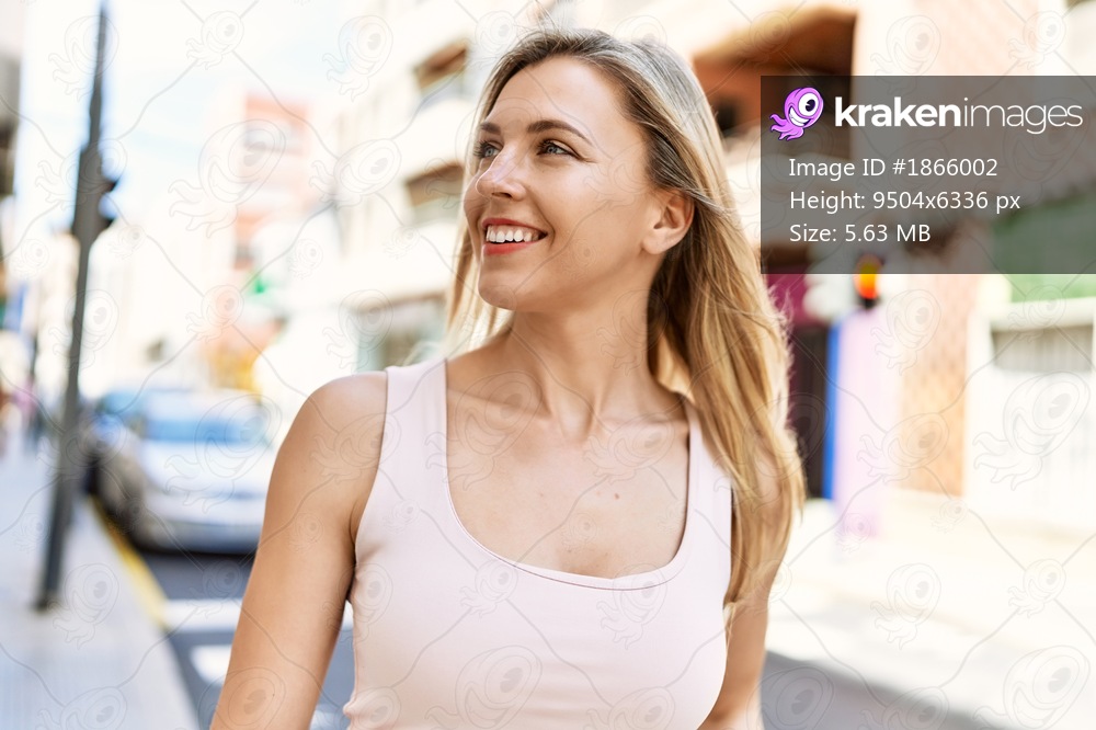 Beautiful blonde woman smiling happy outdoors on a sunny day