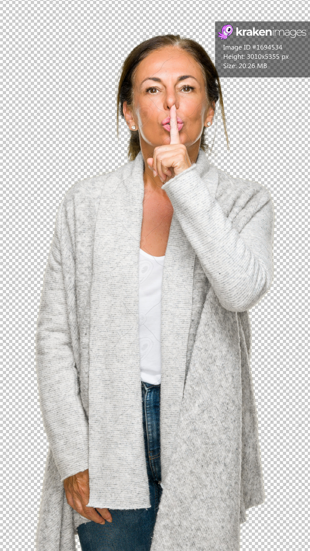 Beautiful middle age adult woman wearing winter sweater over isolated background asking to be quiet with finger on lips. Silence and secret concept.