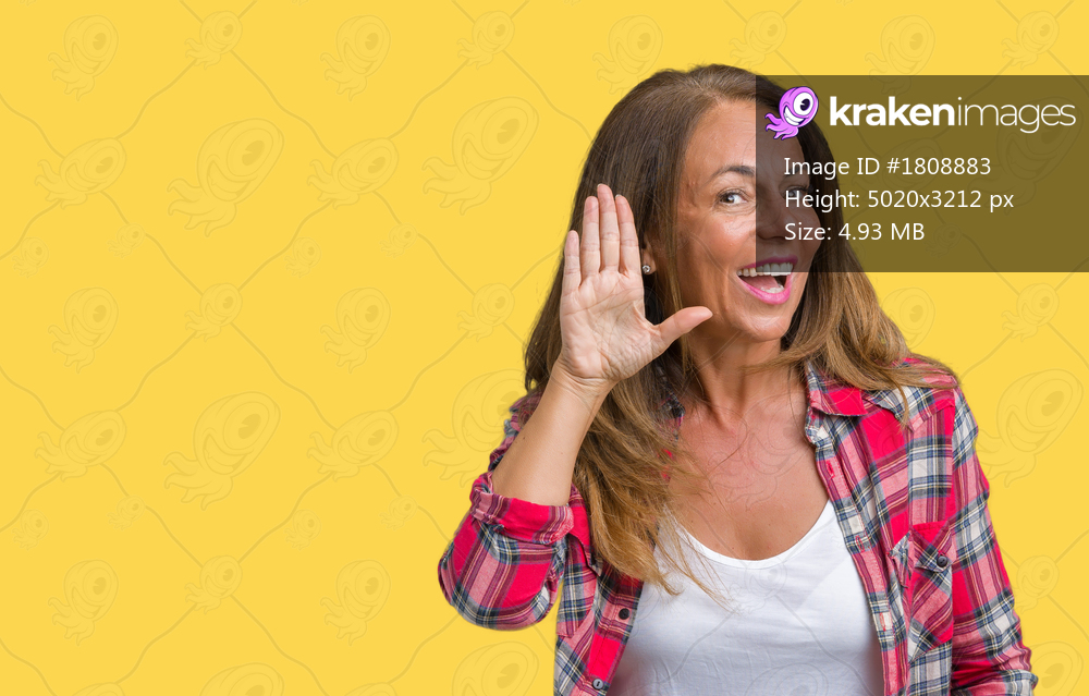 Beautiful middle age woman wearing over isolated background Waiving saying hello happy and smiling, friendly welcome gesture