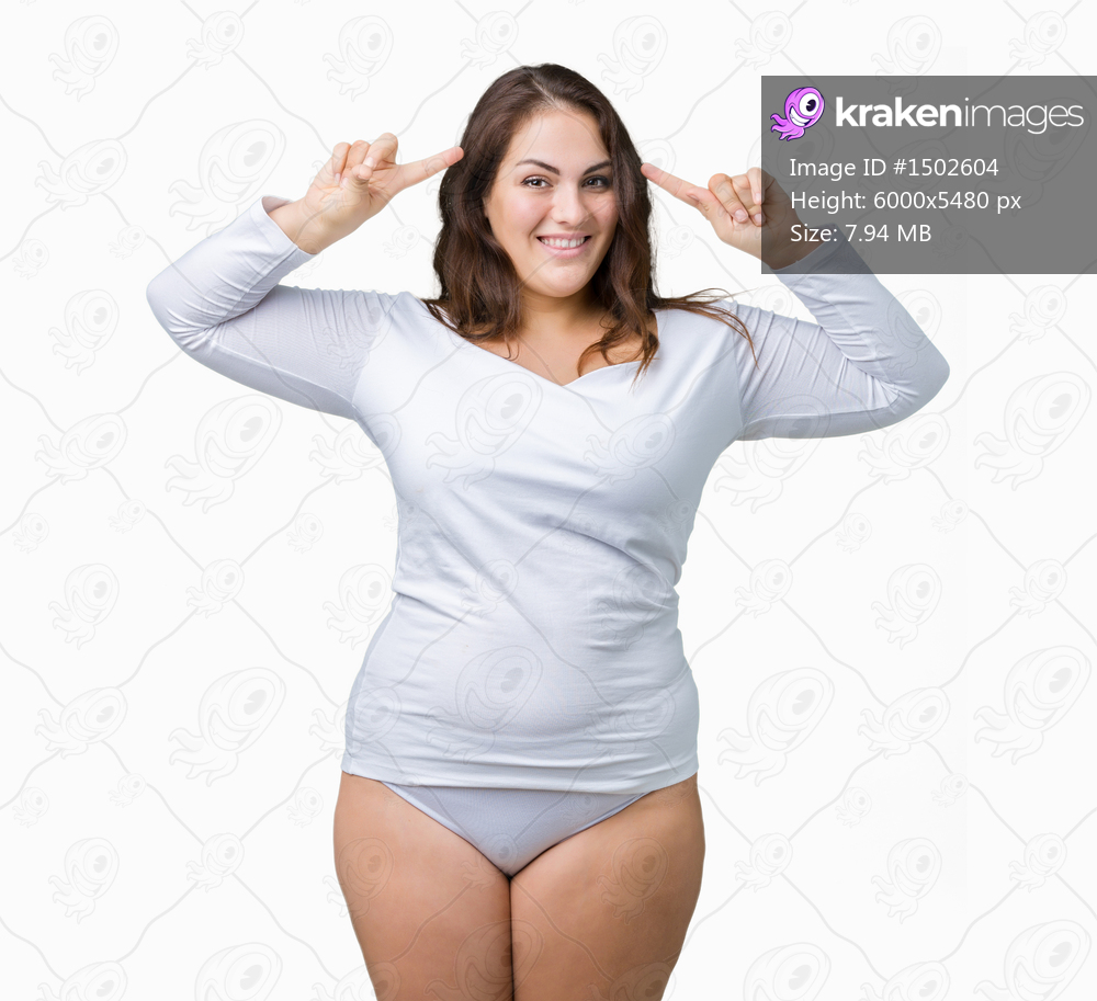Beautiful plus size young overwight woman wearing white underwear over isolated background Smiling pointing to head with both hands finger, great idea or thought, good memory - Kraken Images