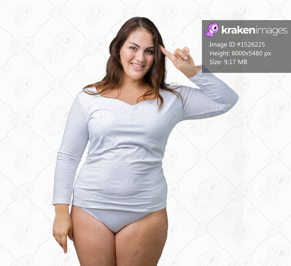 Beautiful plus size young overwight woman wearing white underwear over isolated background Smiling pointing to head with one finger, great idea or thought, good memory - Kraken Images