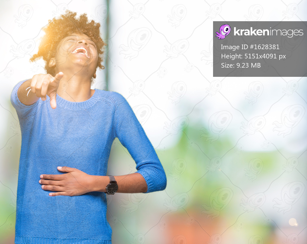 Beautiful young african american woman over isolated background Laughing of you, pointing to the camera with finger hand over chest, shame expression