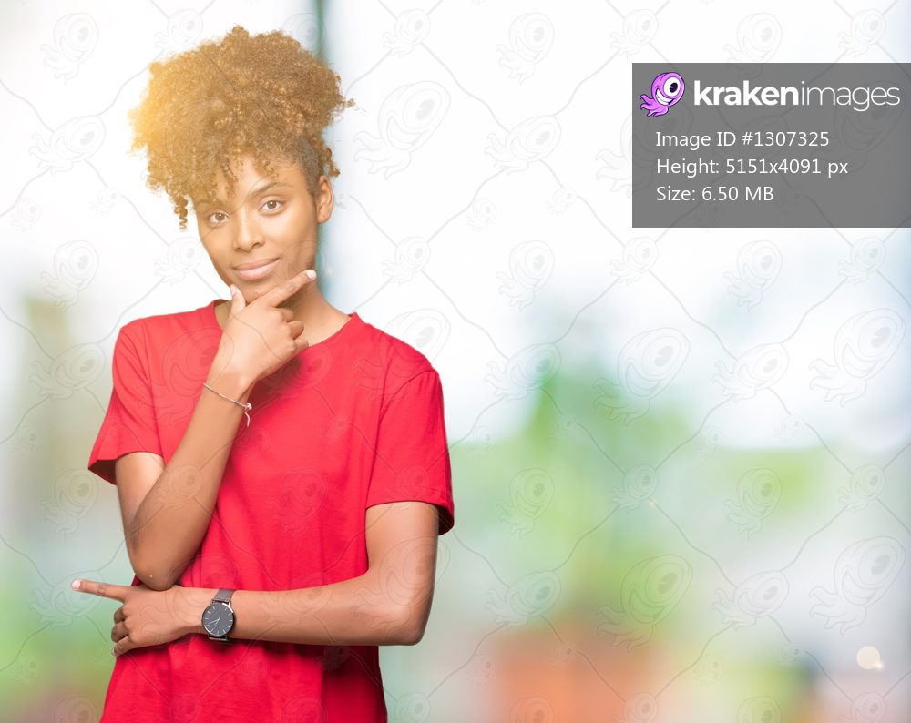 Beautiful young african american woman over isolated background looking confident at the camera with smile with crossed arms and hand raised on chin. Thinking positive. - Kraken Images