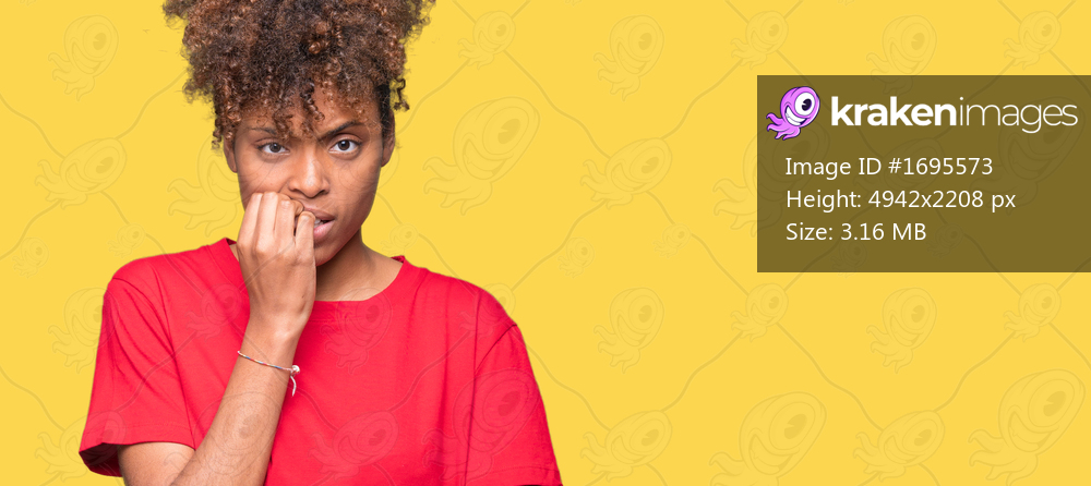 Beautiful young african american woman over isolated background looking stressed and nervous with hands on mouth biting nails. Anxiety problem.