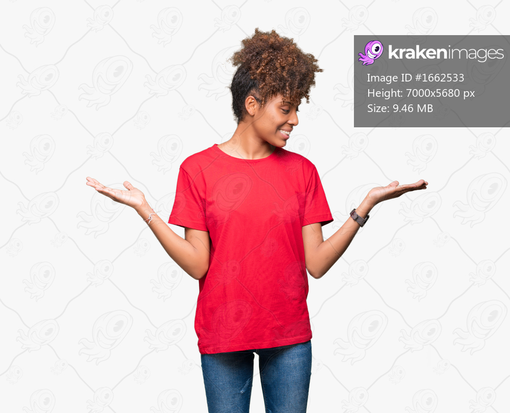 Beautiful young african american woman over isolated background Smiling showing both hands open palms, presenting and advertising comparison and balance - Kraken Images