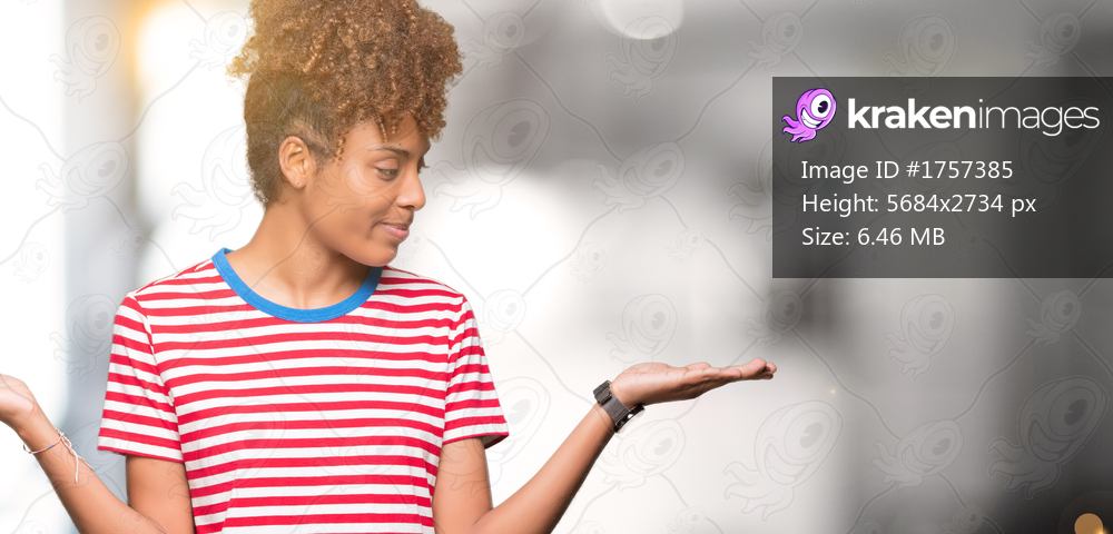 Beautiful young african american woman over isolated background Smiling showing both hands open palms, presenting and advertising comparison and balance - Kraken Images