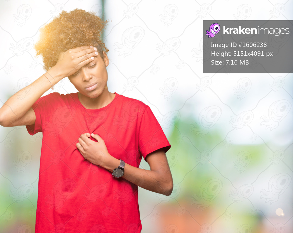 Beautiful young african american woman over isolated background Touching forehead for illness and fever, flu and cold, virus sick
