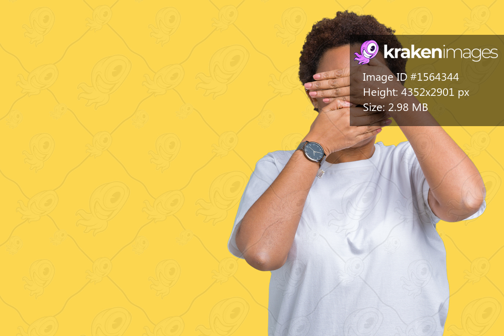 Beautiful young african american woman wearing glasses over isolated background Covering eyes and mouth with hands, surprised and shocked. Hiding emotion - Kraken Images