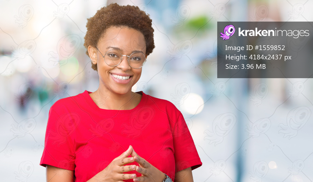 Beautiful young african american woman wearing glasses over isolated background Hands together and fingers crossed smiling relaxed and cheerful. Success and optimistic - Kraken Images