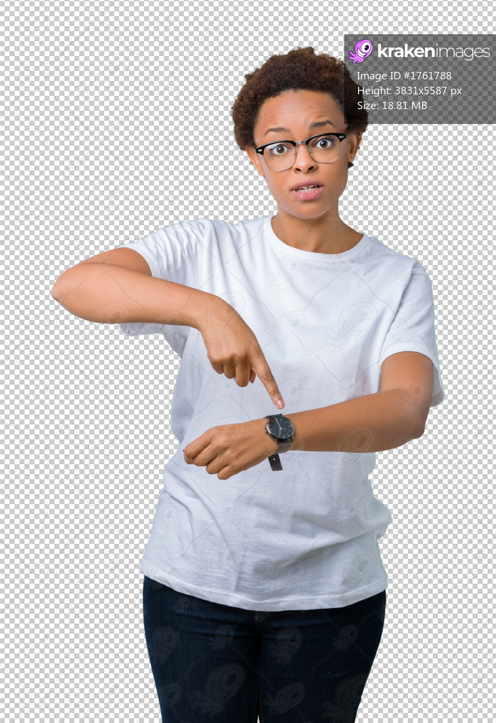 Beautiful young african american woman wearing glasses over isolated background In hurry pointing to watch time, impatience, upset and angry for deadline delay - Kraken Images