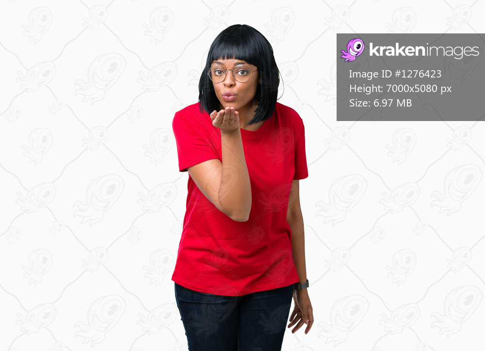 Beautiful young african american woman wearing glasses over isolated background looking at the camera blowing a kiss with hand on air being lovely and sexy. Love expression. - Kraken Images