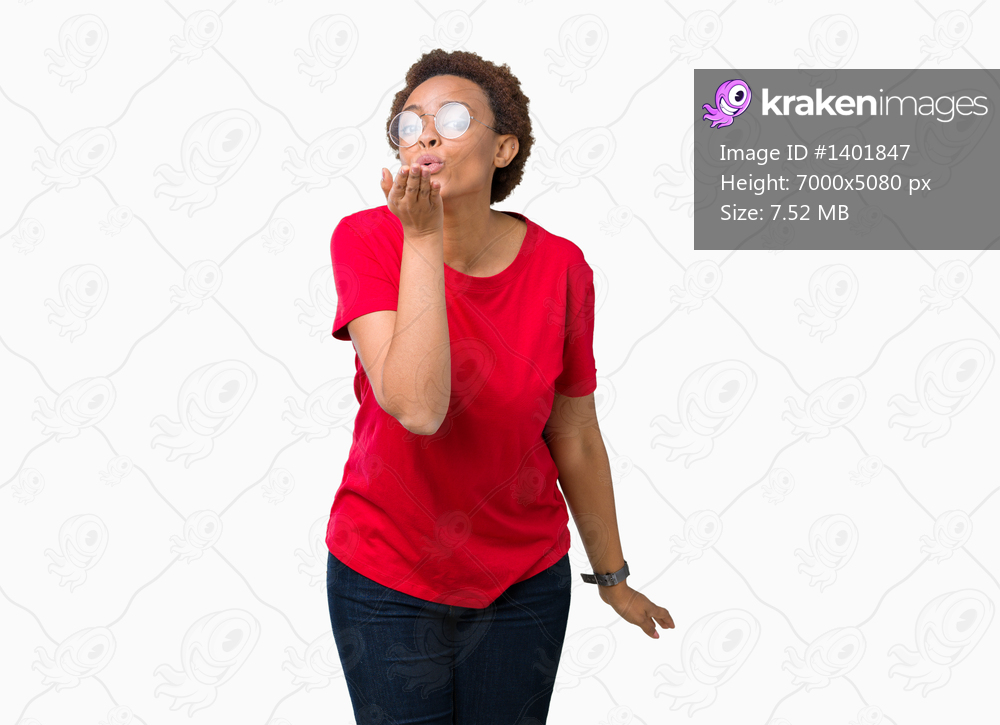 Beautiful young african american woman wearing glasses over isolated background looking at the camera blowing a kiss with hand on air being lovely and sexy. Love expression. - Kraken Images