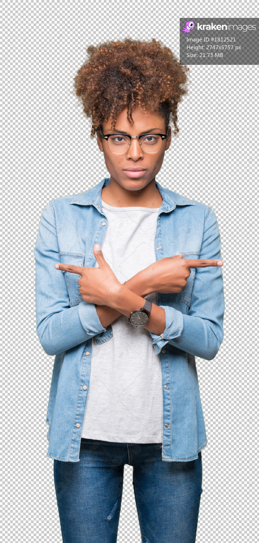 Beautiful young african american woman wearing glasses over isolated background Pointing to both sides with fingers, different direction disagree