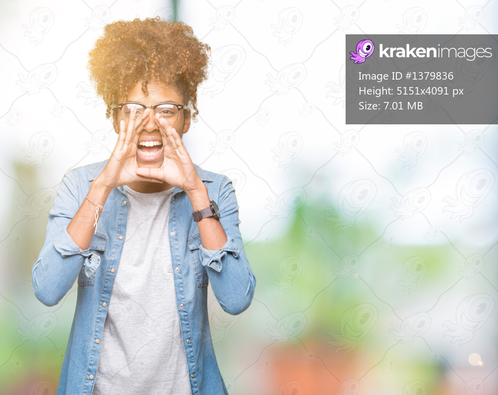 Beautiful young african american woman wearing glasses over isolated background Shouting angry out loud with hands over mouth