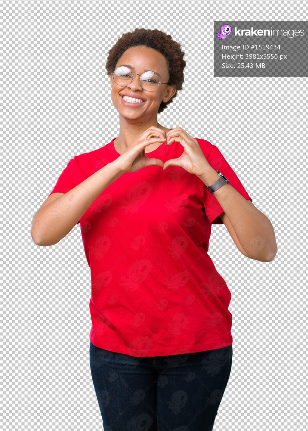 Beautiful young african american woman wearing glasses over isolated background smiling in love showing heart symbol and shape with hands. Romantic concept. - Kraken Images