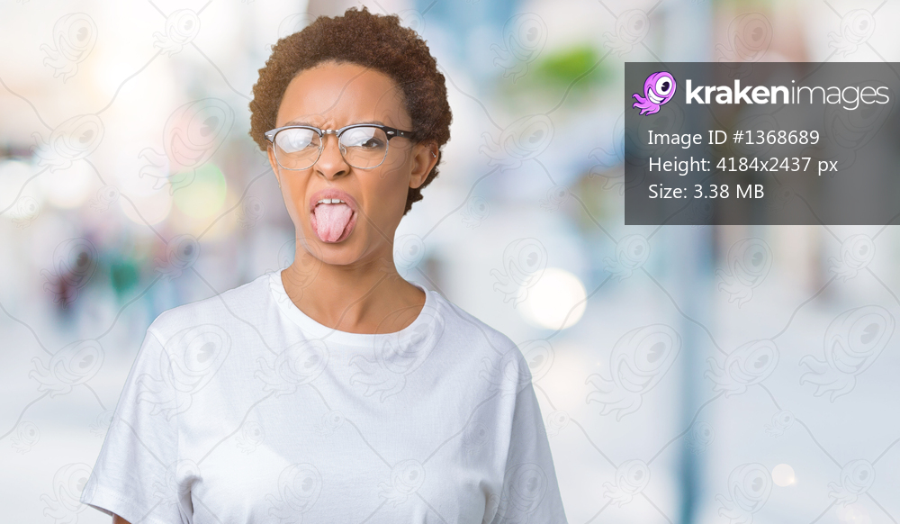 Beautiful young african american woman wearing glasses over isolated background sticking tongue out happy with funny expression. Emotion concept.
