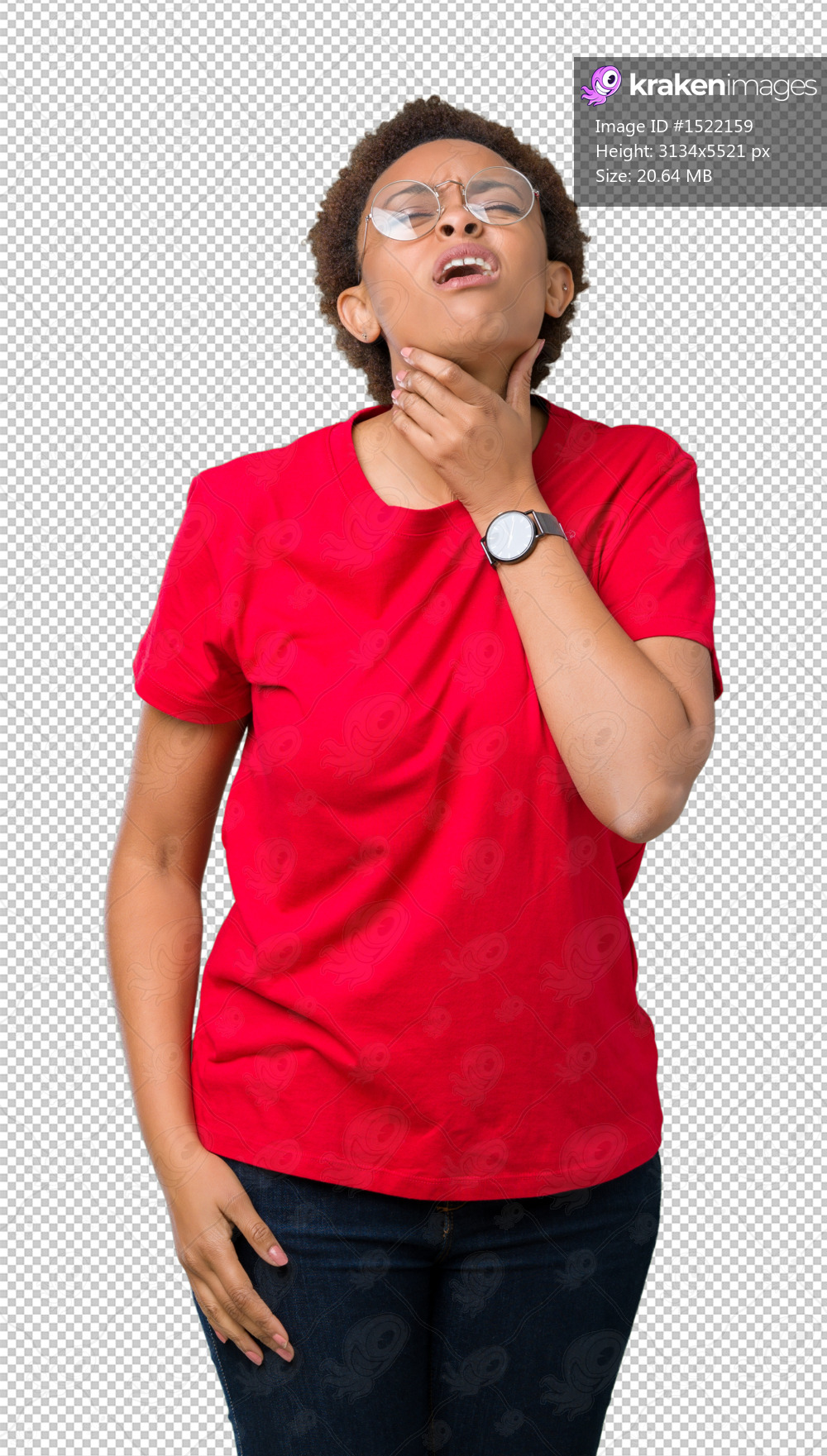 Beautiful young african american woman wearing glasses over isolated background Touching painful neck, sore throat for flu, clod and infection