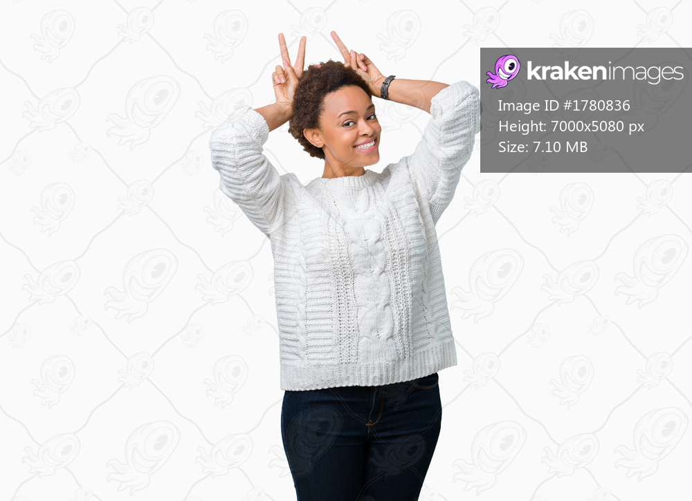 Beautiful young african american woman wearing sweater over isolated background Posing funny and crazy with fingers on head as bunny ears, smiling cheerful - Kraken Images