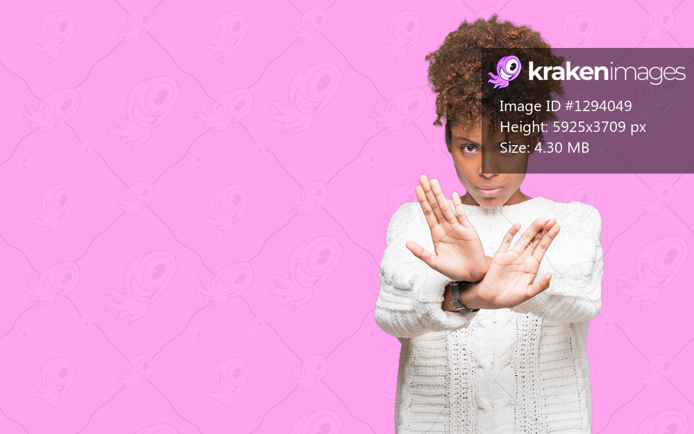 Beautiful young african american woman wearing winter sweater over isolated background Rejection expression crossing arms and palms doing negative sign, angry face - Kraken Images