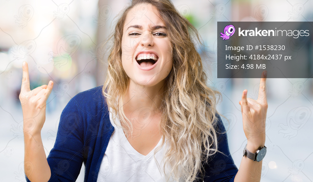 Beautiful young blonde woman over isolated background shouting with crazy expression doing rock symbol with hands up. Music star. Heavy concept.