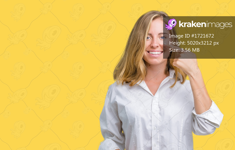 Beautiful young business woman over isolated background Pointing with hand finger to face and nose, smiling cheerful