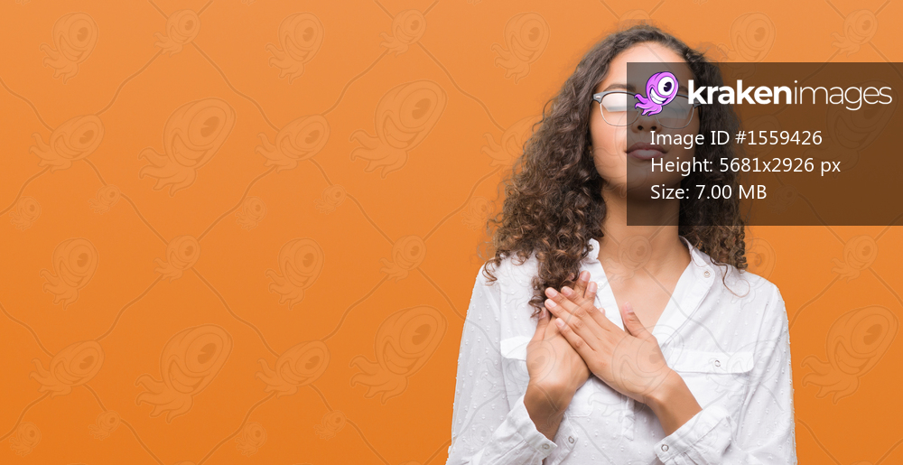 Beautiful young hispanic woman smiling with hands on chest with closed eyes and grateful gesture on face. Health concept.