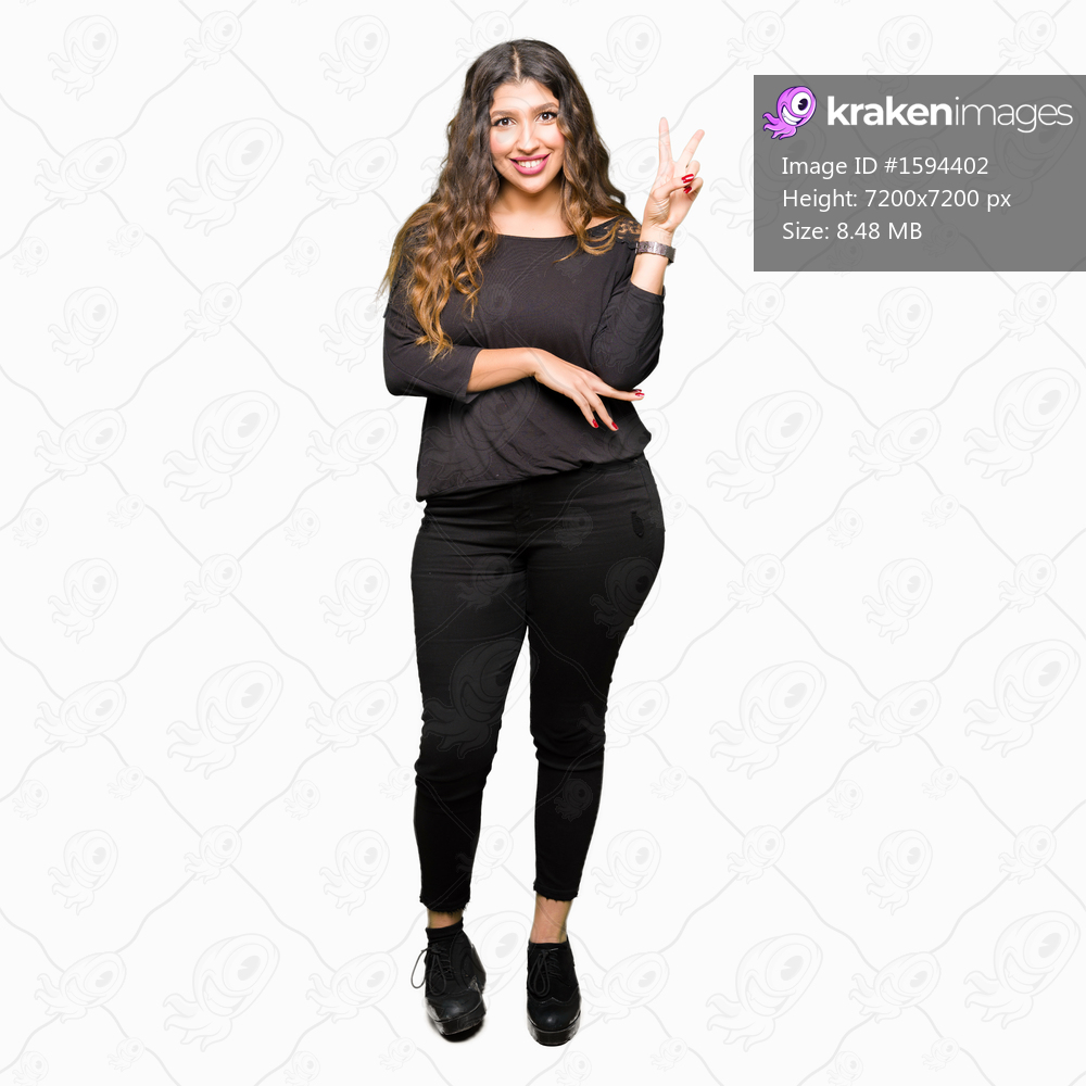 Beautiful young woman with long hair smiling with happy face winking at the camera doing victory sign. Number two.