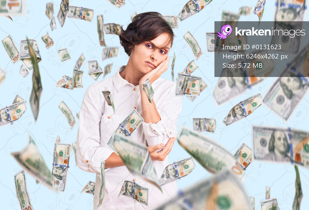 Beautiful young woman with short hair wearing elegant white shirt thinking looking tired and bored with depression problems with crossed arms.