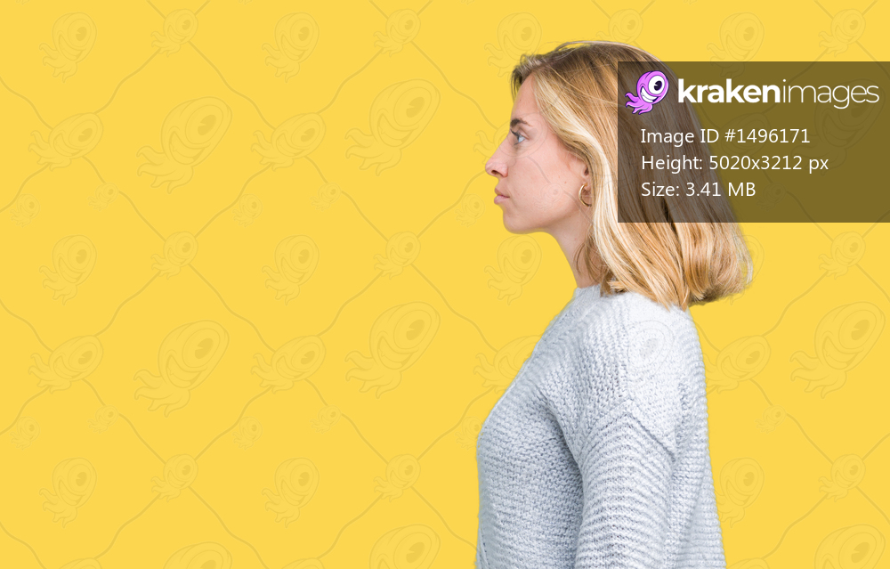 Beautiful young woman wearing winter sweater over isolated background looking to side, relax profile pose with natural face with confident smile.