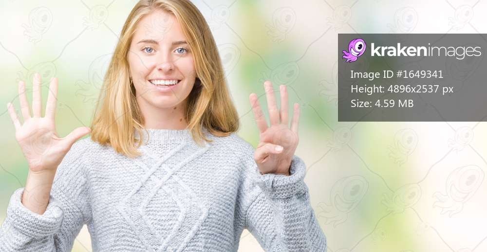 Beautiful young woman wearing winter sweater over isolated background showing and pointing up with fingers number nine while smiling confident and happy. - Kraken Images