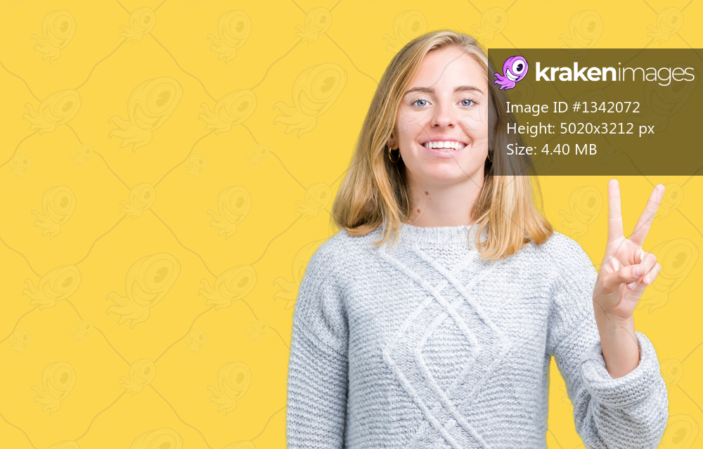 Beautiful young woman wearing winter sweater over isolated background showing and pointing up with fingers number two while smiling confident and happy. - Kraken Images