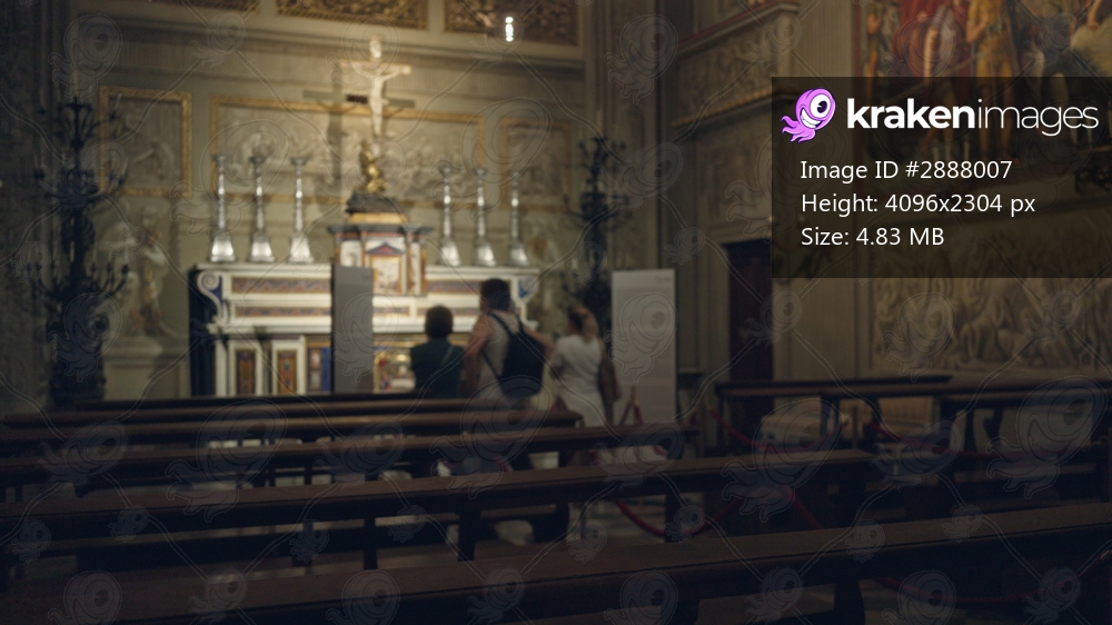 Blurred church interior showing defocused ornate altar and wooden pews with shallow bokeh for soft depth; background backplate copyspace calm.