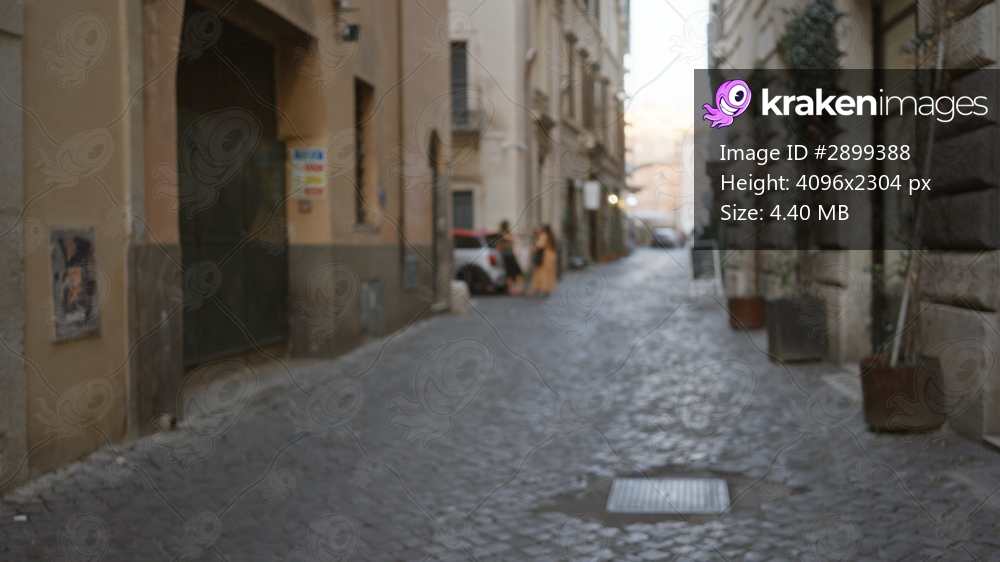 Blurred cobblestone street with soft bokeh, outdoor quiet historic lane; background backplate copyspace calm.