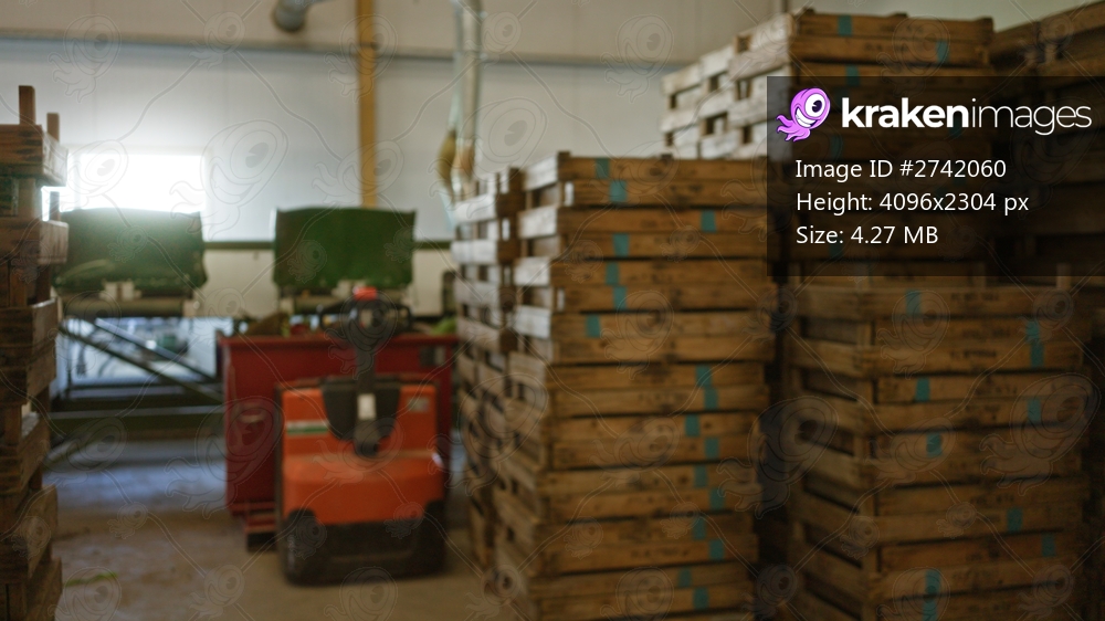 Blurred factory scene with defocused machinery and stacked wooden pallets, conveying an industrial vibe with bokeh effects, highlighting the production environment. - Kraken Images