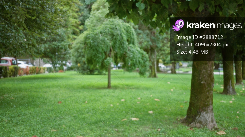 Blurred green park scene with shallow bokeh and soft defocused trees and lawn out of focus; background template overlay calm.