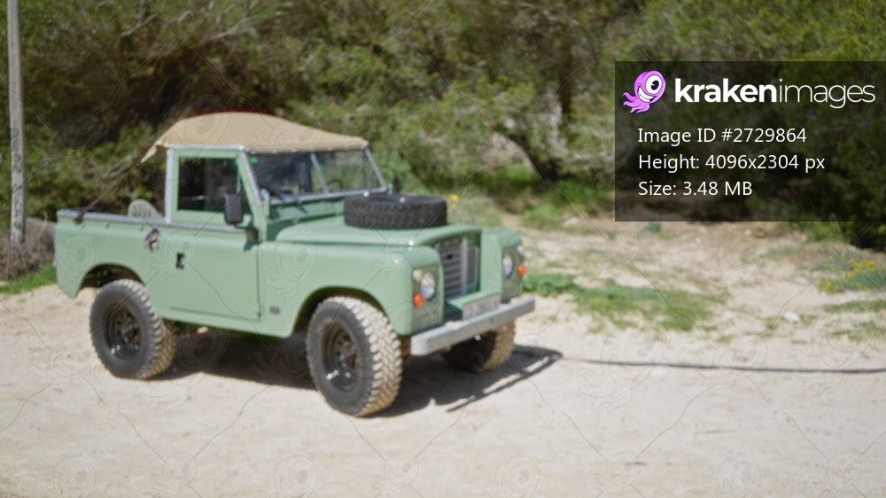 Blurred military car in outdoor camp setting surrounded by trees and dirt ground, creating a defocused and bokeh background effect.