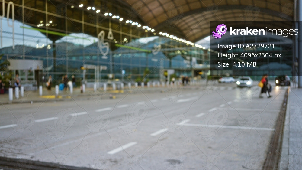 Blurred scene at airport terminal with people and cars moving over defocused background creating a dynamic travel atmosphere with focus on architecture and transportation. - Kraken Images