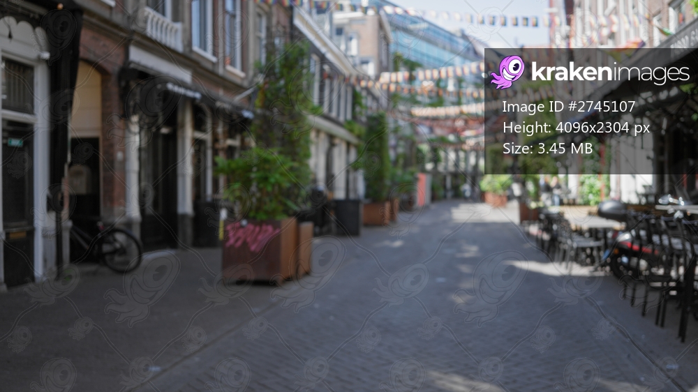 Blurred urban street in amsterdam with bokeh capturing a colorful festive atmosphere on a sunny day with defocused buildings and vibrant cityscape.