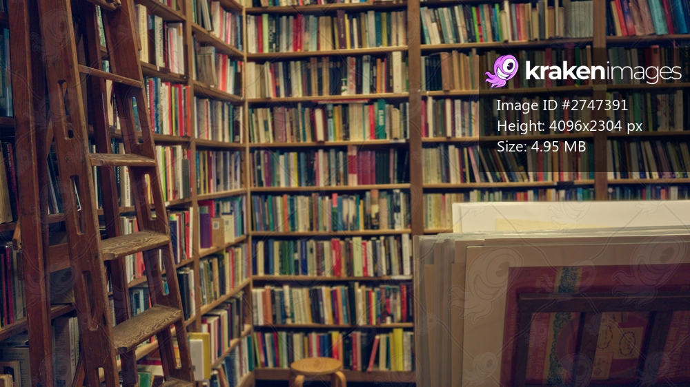 Bookshelves full of diverse books with a wooden ladder in a cozy library, surrounded by an academic atmosphere ideal for study and research.