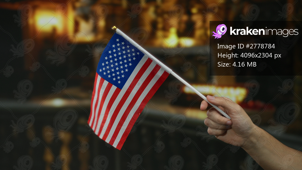 Caucasian man holding a united states flag indoors at a church, highlighting patriotism and national pride.